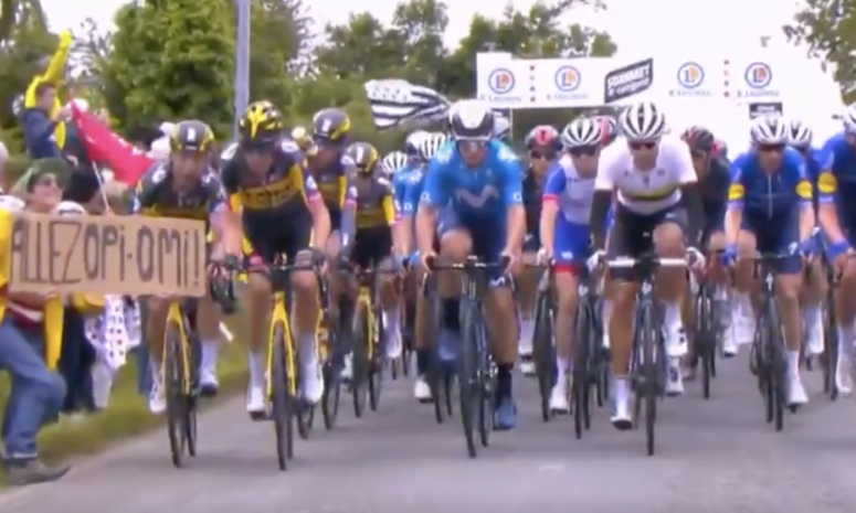 The woman, who was standing on the side of the road holding a cardboard martin's crash took out his entire jumbo visma team, including 2020 tour de france runnerup primoz roglic.