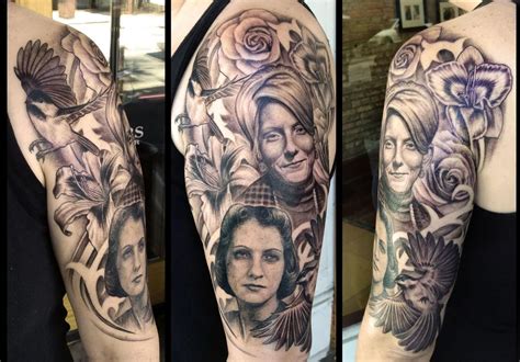 Pepper - Family portrait tribute tattoo | Tribute tattoos, Portrait tattoo sleeve, Fake tattoo ... from i.pinimg.com Half sleeve tattoos will look great if you can write your favorite name on it! They are also frequently associated with powerful bonds, such as our associations with family or friends. A shoulder sleeve tattoo can wrap around the inner and outer bicep and even extend to the chest to create an amazing piece of artwork. This photo was taken shortly after the tattoo was complete therefore is the reason it's a little red. Tree tattoos | palm, tree of life, pine tree tattoo. In this tattoo the half sleeve is covered by flowers. The flowers can be of the same type for example roses, or different types of flowers can be used. View more tattoos designs, tattoo pictures.